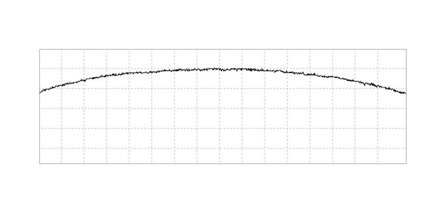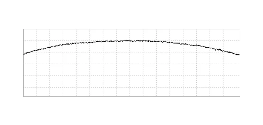 A monochrome line scan camera signal of a homogeneous white calibration target showing signal trimming caused by either lens vignetting or inhomogeneous object illumination.